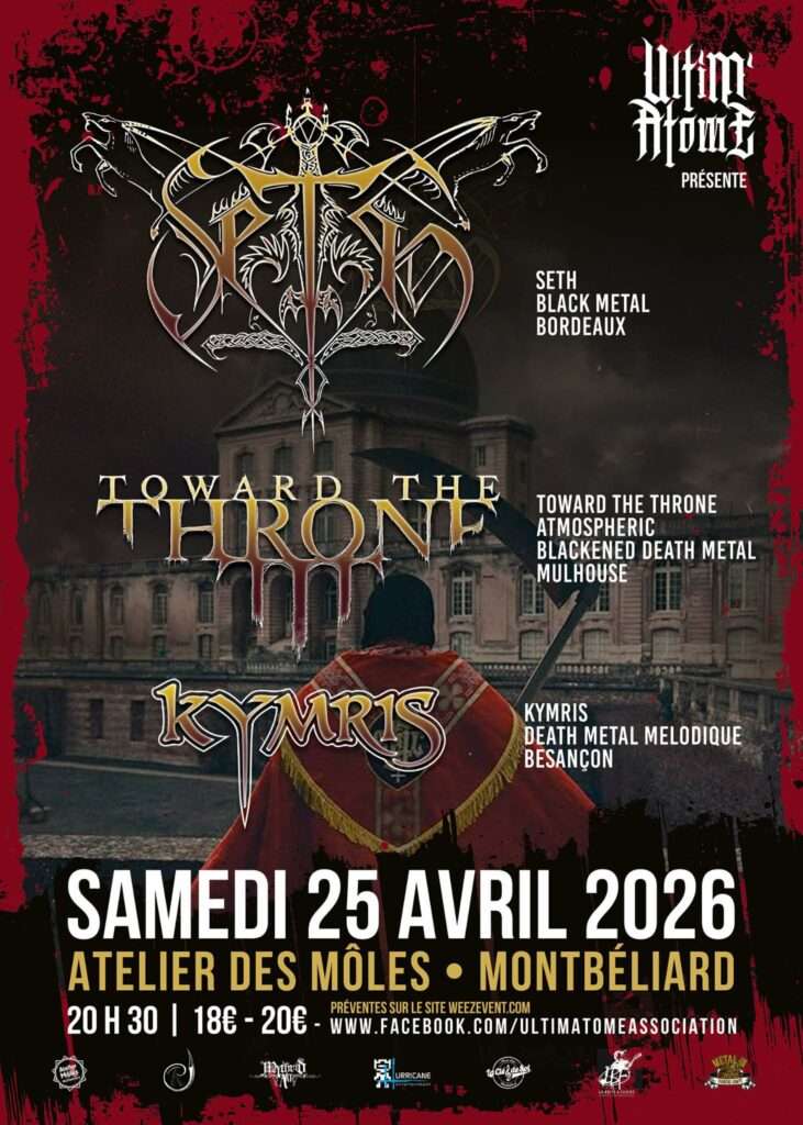Toward The Throne est un groupe français de blackened atmospheric death metal façonnant un alliage unique de mélancolie et d’intensité. Formé en 2012, le groupe se révèle avec son premier album Vowed to Decline (2021), salué comme l’une des sorties underground les plus marquantes de l’année. Sur scène, Toward The Throne impose une véritable dualité : une puissance écrasante mêlée à des atmosphères immersives et émotionnelles, qui les a menés aux côtés de Rotting Christ, The Great Old Ones, Une Misère et bien d’autres. Avec leur nouvel album Midnight (27 février 2026), Toward The Throne livre un nouveau voyage intense et immersif, une plongée introspective entre rêves et cauchemars, et continue d’affirmer sa voix singulière au sein de la scène extrême contemporaine. Une expérience viscérale, émotionnelle et profondément humaine.